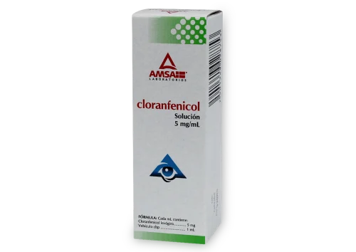 - Solución oftálmica, frasco gotero con 15 mL (0.5% de cloranfenicol)