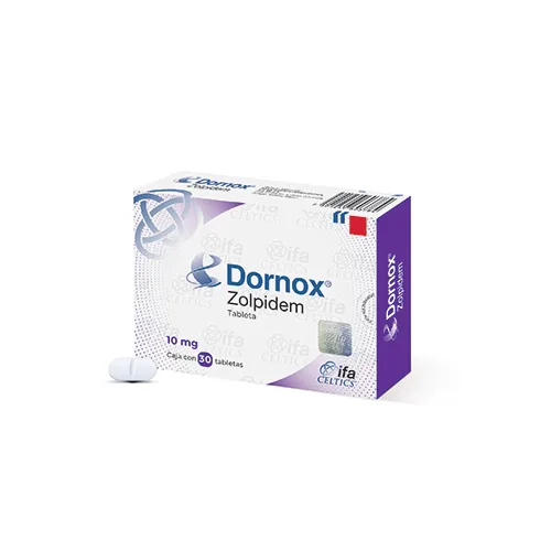 DORNOX ZOLPIDEM 10 mg es un medicamento de prescripción que pertenece a la clase de los indutores de sueño y está indicado para el tratamiento a corto plazo del insomnio. El principio activo es zolpidem tartrato, un hipnótico no benzodiacepínico que ayuda a conciliar el sueño en adultos con dificultades para iniciar o mantener el sueño, produciendo un efecto favorable sobre la duración y calidad del mismo. Se utiliza cuando el insomnio es severo, incapacitante o provoca angustia considerable. Es importante recalcar que su uso debe estar supervisado por un profesional de la salud y bajo ninguna circunstancia se debe automedicar. Siempre consulte a su médico antes de iniciar o modificar cualquier tratamiento farmacológico.