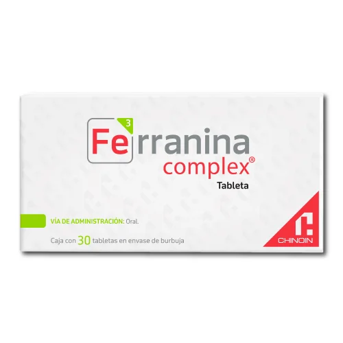 FERRANINA COMPLEX es un suplemento hematológico en tabletas diseñado para apoyar el tratamiento de la anemia ferropénica. Su formulación combina hierro, vitaminas del complejo B (como B1, B2, B6, B12 y ácido fólico) y vitamina C, ingredientes que participan de manera sinérgica en la síntesis de hemoglobina y la producción de glóbulos rojos. Su uso está indicado específicamente en casos de deficiencia de hierro o estados donde los requerimientos de hierro y vitaminas aumentan o no se cubren adecuadamente con la dieta. Se recomienda bajo supervisión médica para la prevención y tratamiento de la anemia ferropénica en adultos. Siempre es importante consultar a su médico antes de iniciar cualquier tratamiento con suplementos de hierro y vitaminas.