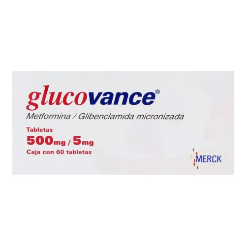 Glucovance 500 mg/5 mg tabletas es un medicamento de combinación oral que contiene metformina (biguanida) y glibenclamida (sulfonilurea). Está indicado para el tratamiento de la diabetes mellitus tipo 2 en adultos, particularmente cuando el control glucémico no se logra de manera adecuada con monoterapia con metformina o una sulfonilurea. Esta formulación aprovecha la acción sinérgica de ambos fármacos para reducir los niveles de glucosa plasmática basal y posprandial, permitiendo una mejor gestión de la hiperglucemia. Su uso debe ser bajo supervisión médica, generalmente en combinación con dieta y ejercicio, y ajustado de acuerdo a la respuesta clínica y tolerancia del paciente.