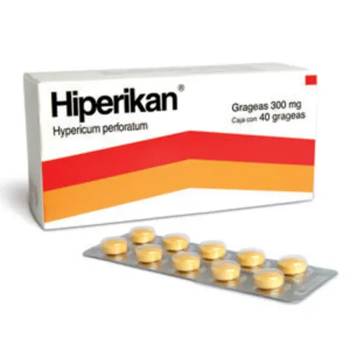 HIPERIKAN 300 mg grageas contiene como ingrediente activo el extracto seco estandarizado de Hypericum perforatum (hierba de San Juan). Se utiliza en el tratamiento de los síntomas leves a moderados de la depresión, gracias a su acción sobre neurotransmisores implicados en la regulación del estado de ánimo. Este medicamento está indicado principalmente en pacientes adultos que presentan episodios depresivos caracterizados por síntomas como tristeza persistente, pérdida de interés o placer, alteraciones en el sueño y del apetito, entre otros trastornos afectivos vinculados con la depresión leve a moderada. La terapia con Hypericum perforatum no reemplaza el manejo médico integral de la depresión; por lo tanto, su uso debe estar bajo la supervisión de un profesional de la salud y formar parte de un plan terapéutico multidisciplinario. En todos los casos, evite la automedicación y consulte a su médico para determinar la pertinencia del tratamiento.
