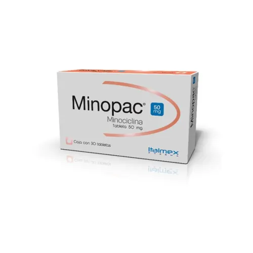 MINOPAC 50 mg tabletas contiene como principio activo minociclina, un antibiótico de segunda generación perteneciente a la familia de las tetraciclinas. Está indicado para el tratamiento de infecciones bacterianas causadas por microorganismos sensibles, incluyendo infecciones del tracto respiratorio, infecciones urinarias no complicadas, infecciones de piel y tejidos blandos, así como algunas infecciones transmitidas sexualmente como la uretritis gonocócica y no gonocócica. Este medicamento es empleado en el ambiente clínico para el manejo de cuadros infecciosos cuya sensibilidad bacteriana a minociclina ha sido confirmada. La minociclina es de uso hospitalario y ambulatorio bajo indicación médica proveniente de un diagnóstico correcto y respaldo microbiológico. Su uso debe reservarse para situaciones donde otras tetraciclinas o antibióticos de primera elección no sean adecuados o cuando la bacteria sea resistente a otros tratamientos.