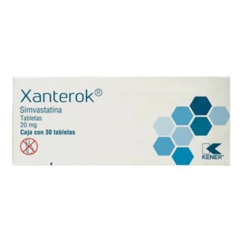 XANTEROK SIMVASTATINA 30 TABLETAS 20 MG es un medicamento que contiene como principal componente la Simvastatina, una droga que pertenece al grupo de las estatinas. Este fármaco es utilizado principalmente para el control de los niveles de colesterol y triglicéridos en el organismo, ayudando a prevenir enfermedades cardiovasculares.