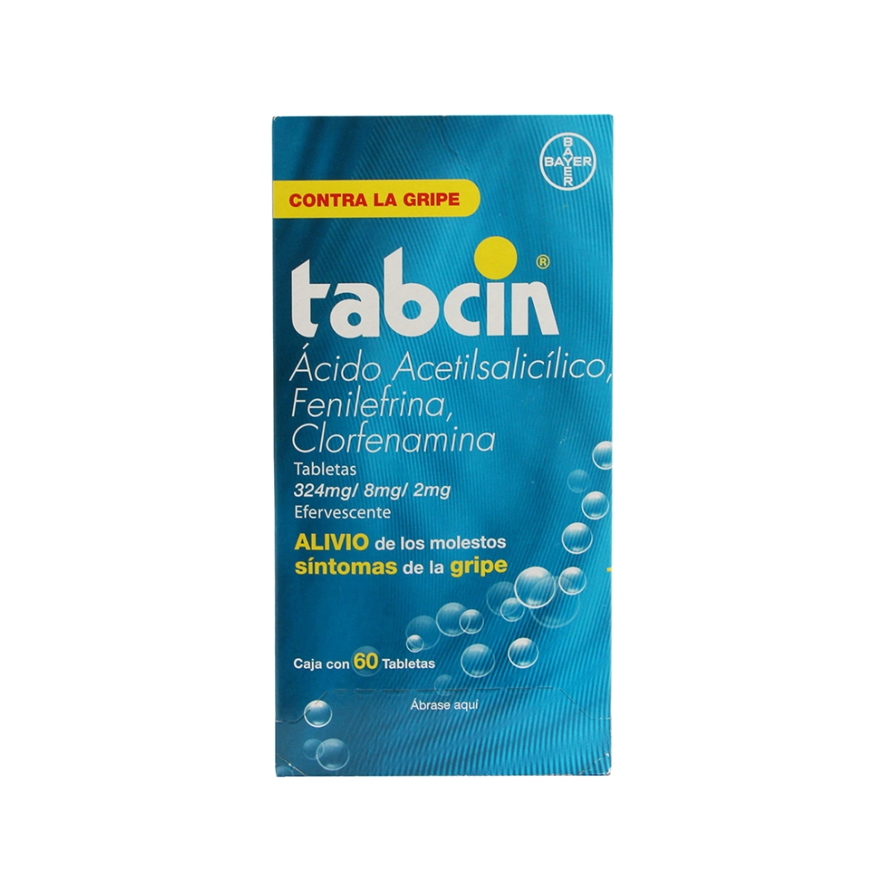 La acción terapéutica de Tabcin se debe a la combinación de sus principios activos. El ácido acetilsalicílico contribuye a disminuir el dolor y la fiebre; la clorfenamina actúa como antihistamínico, ayudando a reducir la respuesta alérgica; y la fenilefrina favorece la descongestión de las vías respiratorias superiores.
