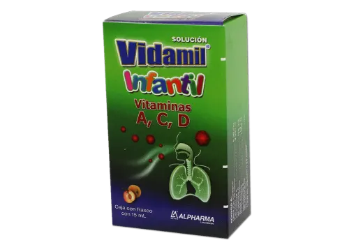 La dosis recomendada para VIDAMIL INFANTIL con 15 mL debe establecerse de acuerdo con las indicaciones específicas del fabricante y la concentración de nutrientes contenida por cada mililitro de solución. Por lo general, se sugiere una administración diaria de 1 a 5 mL al día, preferentemente después de los alimentos. La duración dependerá de los requerimientos individuales y del criterio médico.