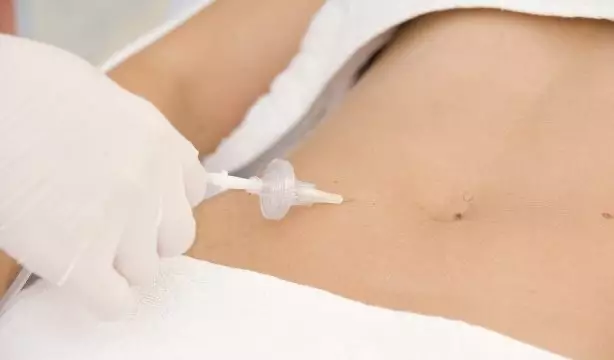 - Ya listos, el médico inserta pequeñas agujas (4 a 13 mm) que conducirán el gas por debajo de la piel.