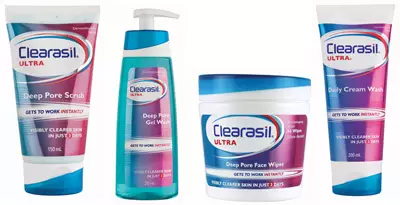 Clearasil es una marca estadounidense de productos para el cuidado de la piel y el acné, cuyos productos contienen como ingredientes activos: