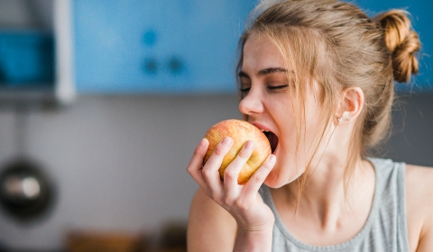 Las manzanas son ideales para cuidar nuestra dentadura no solo por su gran aporte de calcio, también porque al morderla se produce un movimiento en nuestra boca que fomenta la segregación de saliva, ayudando a limpiar la dentadura de restos de comida que podamos tener acumulados, y no solo eso: al morder la manzana fortalecemos la mandíbula y los dientes.