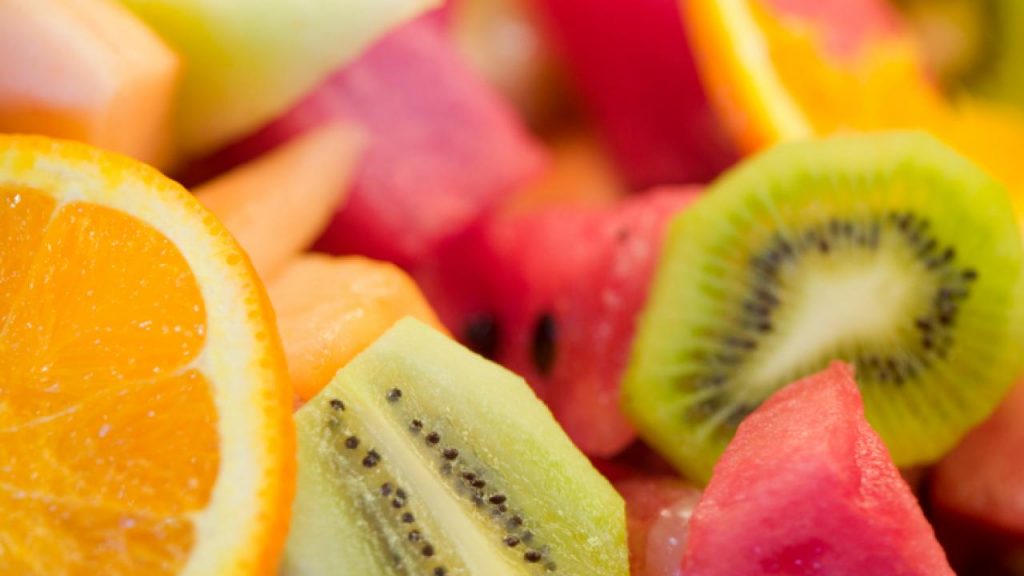 El kiwi aporta gran cantidad de fibra y pocas calorías. Es rico en vitamina C, vitamina E, y vitamina A, así como en potasio, calcio, cobre, magnesio y fibra. Además al contener fibra ayuda a regular el metabolismo mejorando la digestión.