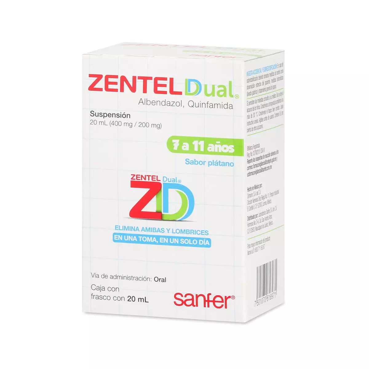 Zentel Dual se trata de una suspensión utilizada en el tratamiento de disentería amebiana derivada de Entamoeba histolytica y amebiasis intestinal aguda.