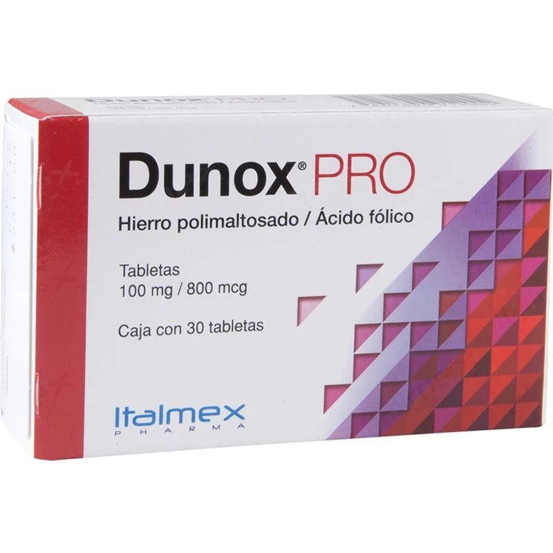 Dunox Pro es un suplemento que está indicado para tratar la anemia durante el embarazo puerperio y lactancia, así como las deficiencias de hierro y ácido fólico en esta etapa.