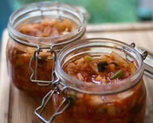 Cuando hayan pasado las 12 horas, cuela la col, colócala en otro recipiente y revuelve con la mezcla de especias. Una vez mezclados, cierra el frasco super bien y mete la mezcla en la nevera. Debes dejar fermentar por un mínimo de 8 días y listo. Como te dijimos, es un proceso largo, pero el Kimichi tiene una vida de 6 meses.