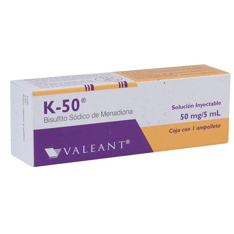 La fitomenadiona se puede encontrar en solución inyectable de bisulfito sódico de menadiona 50 MG creado por el laboratorio Valeant*