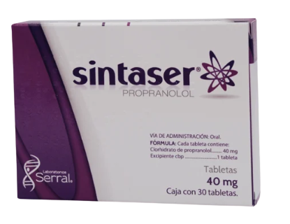 Sintaser es un fármaco, compuesto por Propranolol, que se utiliza para tratar los siguientes padecimientos: Hipertensión arterial y ritmo cardíaco irregular Feocromocitoma (tumor en una pequeña glándula cerca de los riñones) Ciertos tipos de temblores y estenosis subaórtica hipertrófica (una enfermedad del músculo del corazón) Angina (dolor de pecho), dolores Leer más