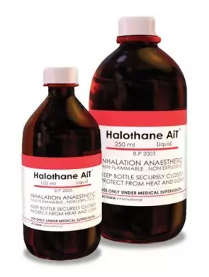 El Halotano es un vapor para inhalación que se utiliza para la anestesia general durante una cesárea u operación quirúrgica.