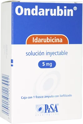 Idarubicina se puede encontrar en marcas comerciales como Idamycin ondarubin idaralem, entre otras, además de genéricos y en cuanto a la presentación se encuentra en solución en caja de con 1 frasco ámpula con liofilizado de 5mg