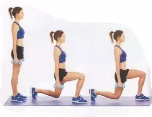 Cuando le añadas complejidad a través del peso puedes sostener unas mancuernas en las manos, esto hará que hagas mayor esfuerzo en cada desplante y trabajen más tanto los glúteos como el abdomen.