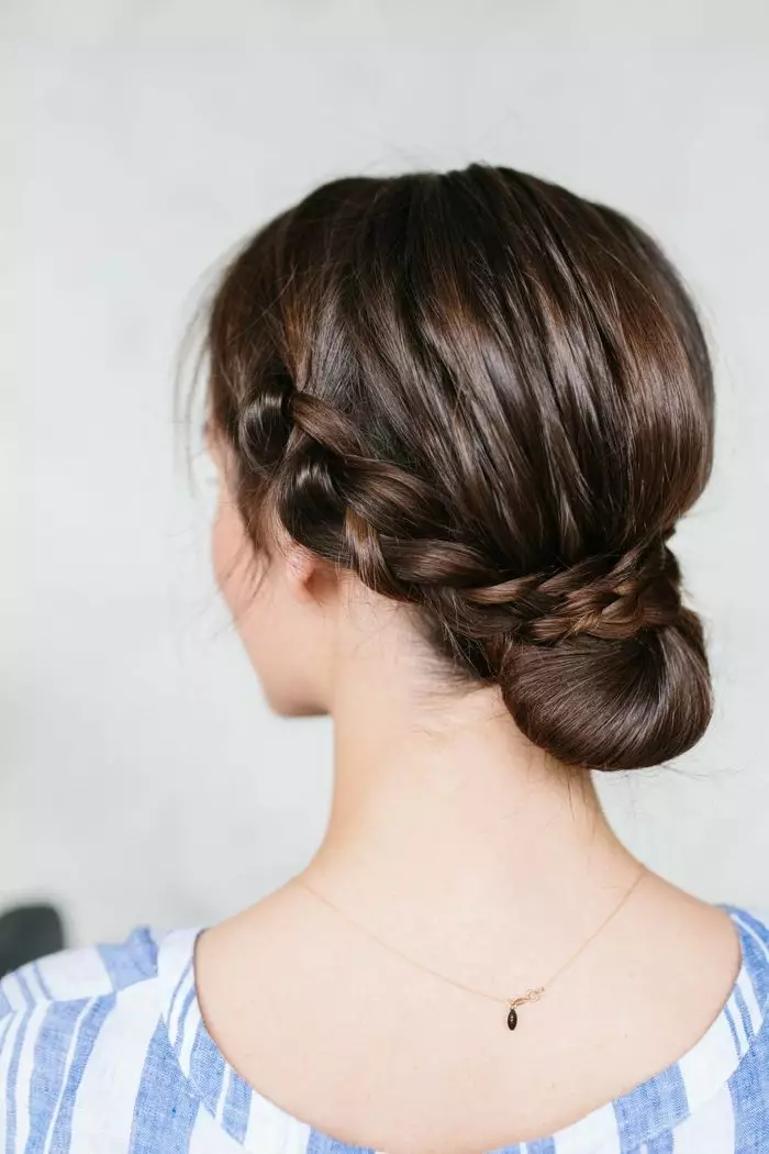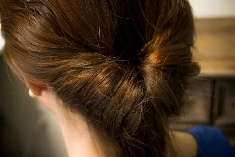- Toma el resto del pelo, enrollarlo sobre sí mismo y colocarlo en forma de moño sobre los pasadores que ya se habían puesto. El moño se puede sujetar con horquillas o con un coletero. Si se apuesta por esto último, después se deberá disimular la goma con un mechón.