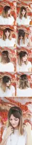 - Llevar los mechones delanteros hacia detrás y fijar con horquillas.
