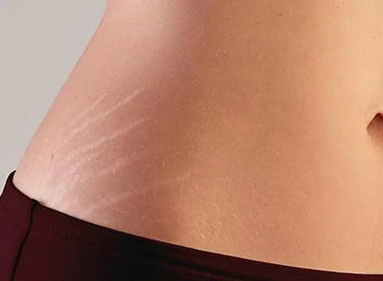 Las estrías se pueden percibir externamente, como cicatrices de apariencia blanca, roja, rosada o morada, generalmente en piernas, abdomen, glúteos, glúteos, senos e incluso brazos.