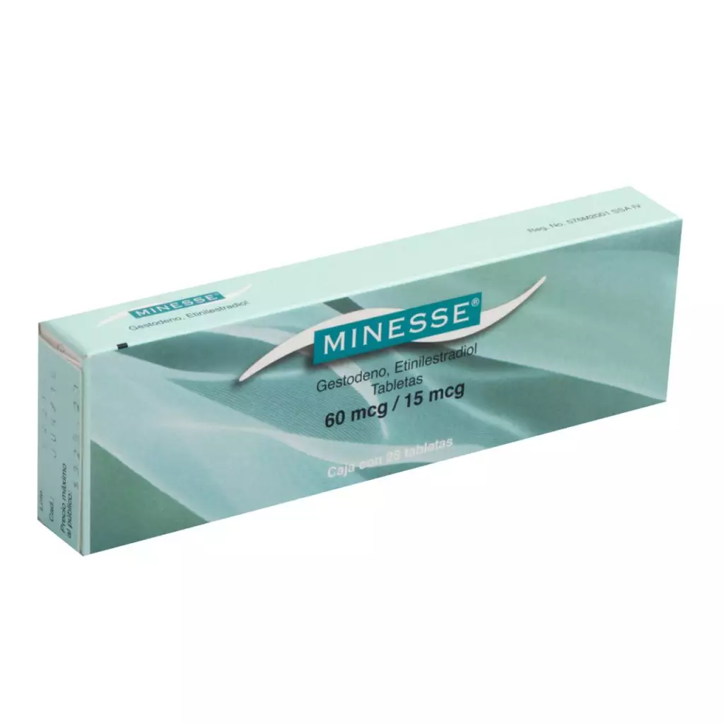 Minesse es un medicamento que se puede encontrar en presentación de envase tipo calendario con 28, 24 (amarillas) que contienen 60 mcg de gestodeno y 15 mcg de etinilestradiol y 4 grageas blancas con placebo que no contienen sustancia activa