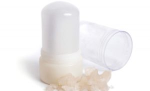 Al poner en contacto la piedra de alumbre con el agua o el sudor, el alumbre se deshace, entonces así combate las bacterias y reduce el mal olor.