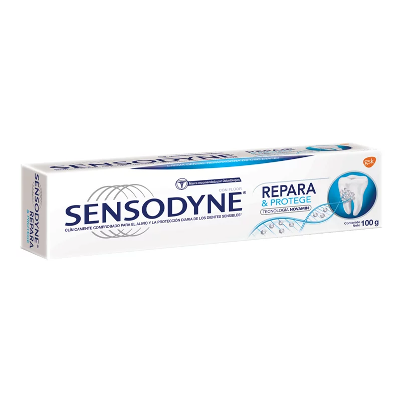 - Sensodyne Repara y Protege con Flúor.