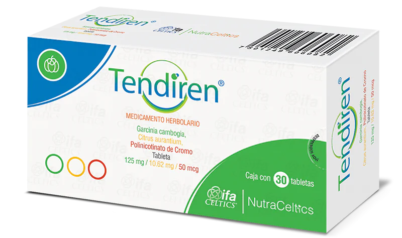 Tendiren es un medicamento herbolario, compuesto por Garcinia Cambogia, Citrus Aurantium, Polinicotinato de Cromo. Auxiliar en la reducción y control del peso corporal asociado a dieta y ejercicio en pacientes con sobrepeso y obesidad exógena.