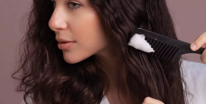 Para el cabello lacio también puedes usar mousse para peinarlo. En el cabello mojado pon una ligera cantidad y cepíllalo con un peine o cepillo perfectamente hasta desenredarlo.