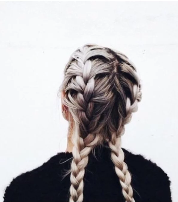 Este tipo de peinado es lo de hoy. Si quieres un aspecto juvenil y relajado, opta por este tipo de peinado. La cuestión está en dividir tu cabello en dos de manera vertical y realizar una trenza de raíz de cada lado. Puedes trenzar los mechones hacia arriba o hacia abajo e igual quedarán super padres. Las dos trenzas son lo que todo el mundo está utilizando.