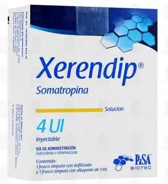 Hay dos sustancias que encuentras en las presentaciones de Xerendip, Somatropina y Metacresol. La Somatropina se utiliza en el tratamiento de padecimientos por la carente producción de hormona de crecimiento, enanismo hipofisiario y síndrome de Turner.