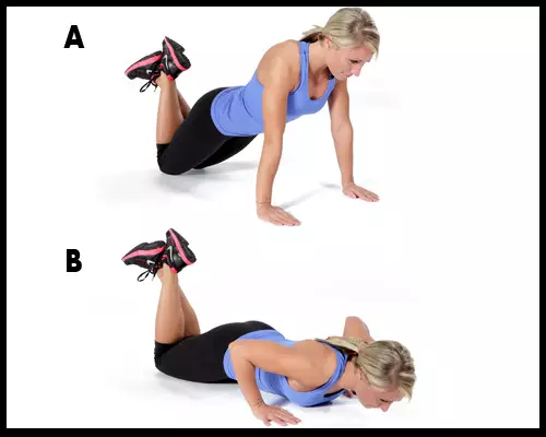 Esto es idéntico a una flexión de brazos, pero realizado sobre las manos y rodillas, con los pies levantados del suelo cuando desciendes. Esto hace que los abdominales y las piernas hagan un gran trabajo, siendo una gran manera de practicar para el movimiento real.