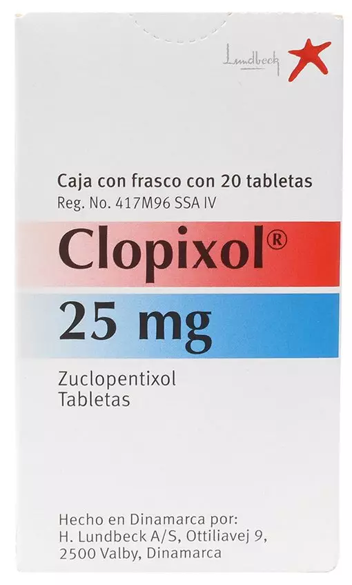 - Clopixol: Cada tableta contiene 10 y 25 mg de Diclorhidrato de Zuclopentixol