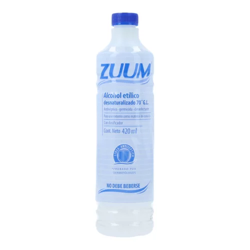 | Qué es: | El Alcohol etílico de Zuum es un antiséptico y desinfectante de heridas. |